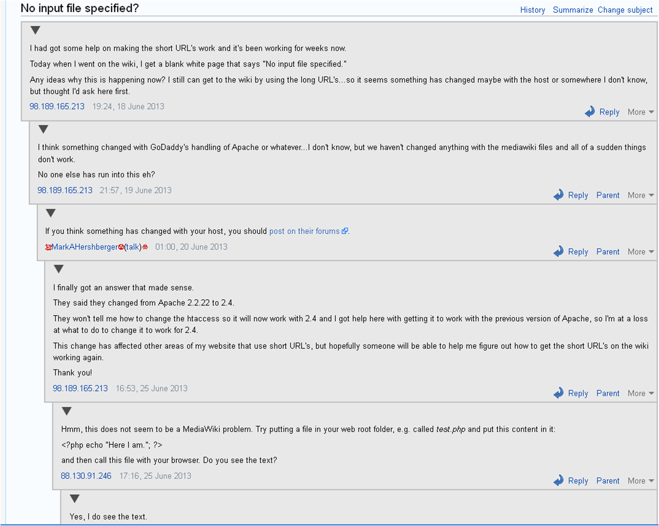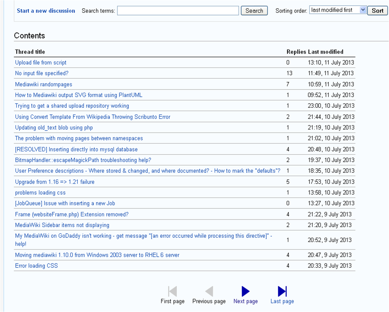 The "Discussion" feature at Scientolipedia has been customized to allow for unlimited new topics to be created and responded to. The "threading" of the discussions acts like Forum software. Since new threads are listed out and easy for anyone to see, it is far easier to follow conversations and see the responses than say Facebook or blogs or even other dedicated Forums.