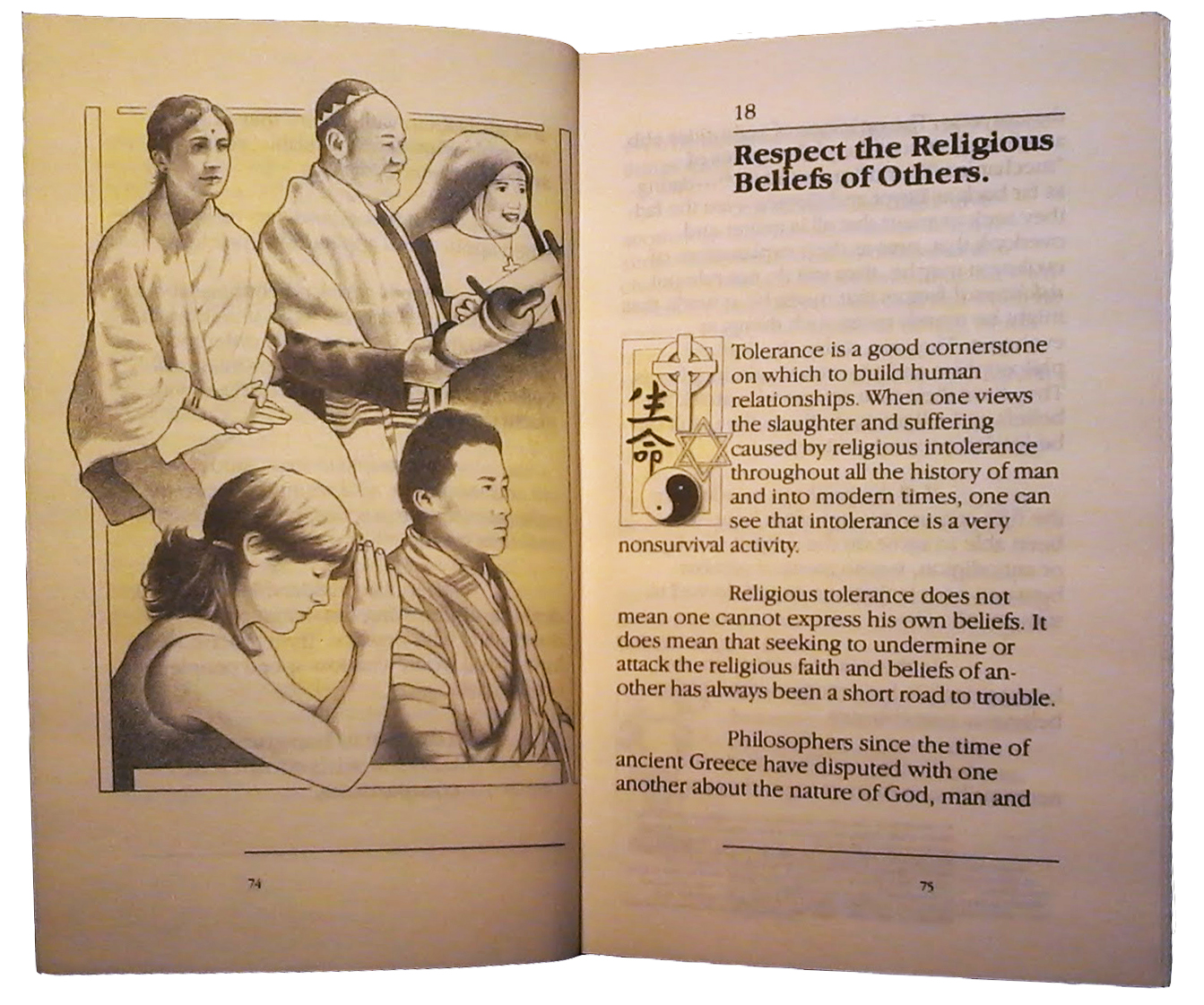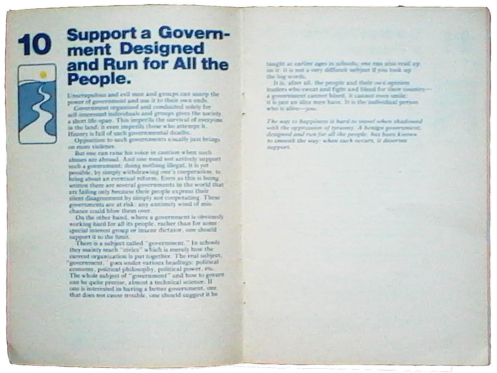Booklet The Way to Happiness (main text with introduction outlining what has been missed, extracted from the first Happiness Rundown course checksheetA list of materials, often divided into sections, that give the theory and practical steps which, when completed, give one a study completion...More